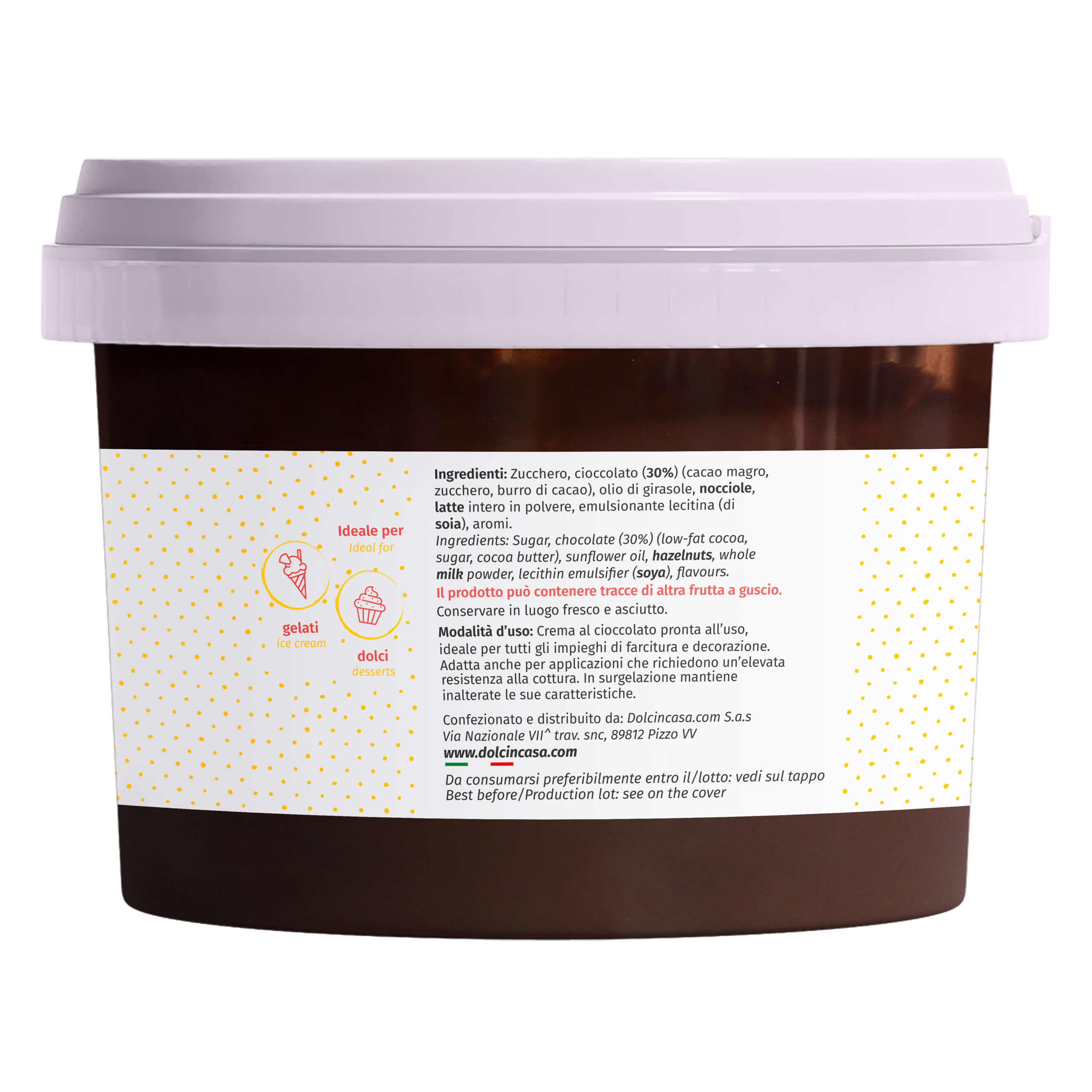 La Crema al Cioccolato Prestige è una golosa e raffinata crema spalmabile al cioccolato, pensata per farcire e ricoprire eleganti dessert come cupcake, torte calde e fredde, profiteroles, cioccolatini e mignon.