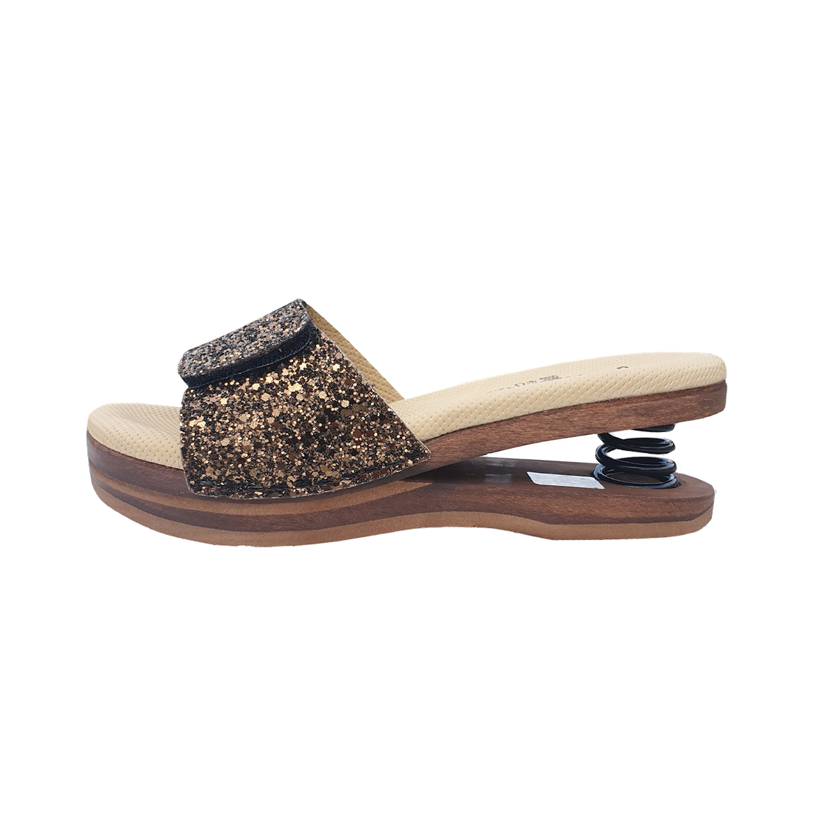 Lo zoccolo con la molla! Calzatura professionale e altamente performante. Altezza molla 5 cm. Grazie all’elasticità della sua molla, ammortizza l’urto del piede e trasforma ogni piccolo passo in un salutare esercizio per riattivare la circolazione.